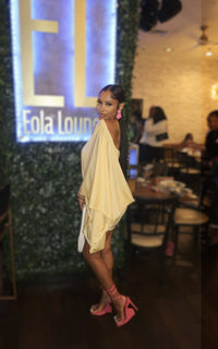 Muse is a mini dress designed to turn soft movement into a bold statement. Featuring a draped overlay and fitted mini skirt, this look brings elegance and edge into perfect balance. The cape-style sleeves are meant to stand out while the fitted mini skirt allows the curves to be accentuated.